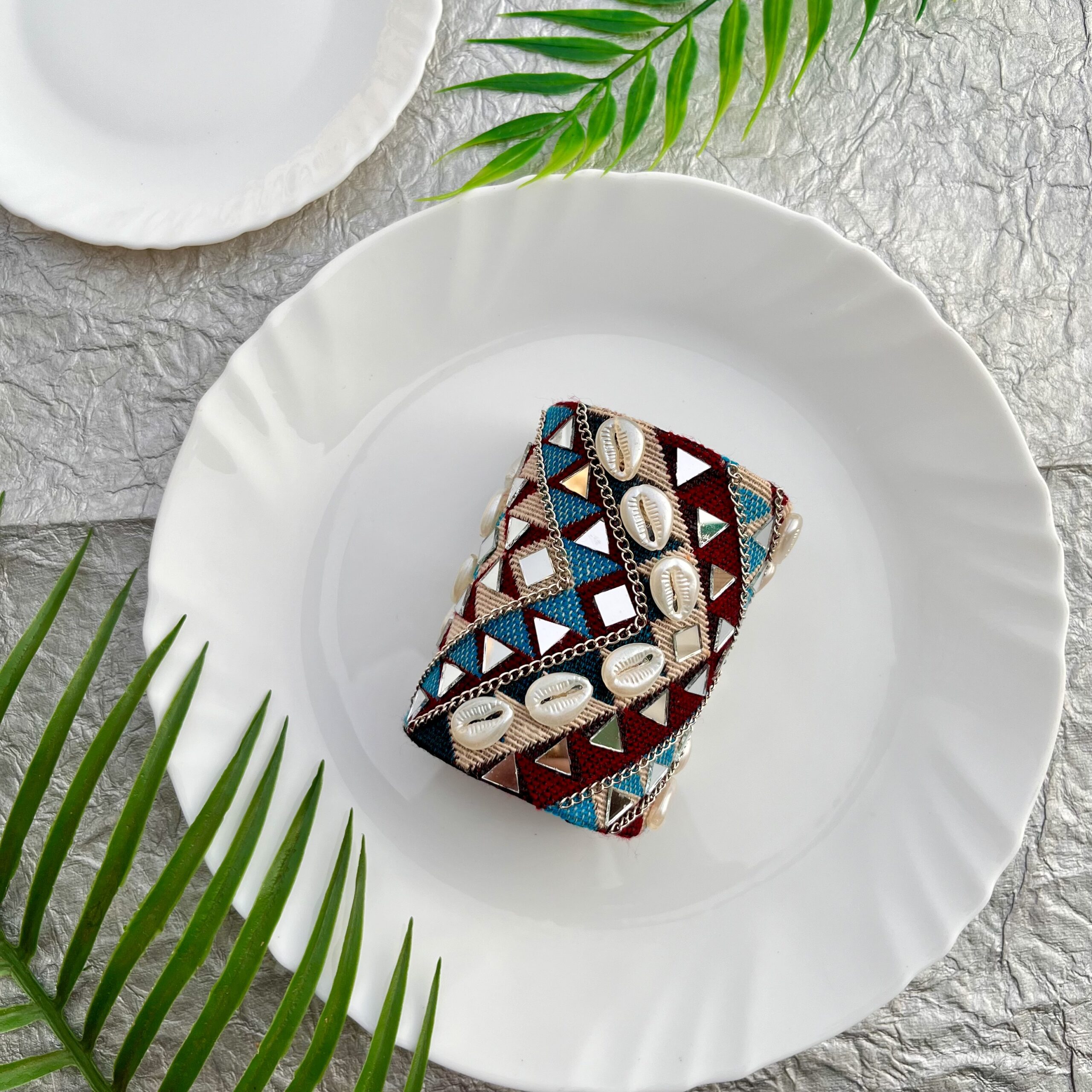 Small parcel items ship regular ground via delivery services such as FedEx, UPS or DHL. Orders typically take 2-3 business days to process and in-stock items will usually be delivered 3-5 days from the date that they ship (depending on origin and destination). If there is a delay, you will be notified by email. No signature is required for standard ground shipping, so you may want to make arrangements to have packages brought inside soon after delivery, if you are unable to receive it in person.Make a bold statement this Navratri with handcrafted, embellished Boho Aura handcuffs designed to dazzle with ghunghroos, mirrors, cowrie shells and intricate metal charms. Weather you are twirling in your chaniya choli or adding a Boho touch to post festive season, these cuffs are your new go-to accessory.