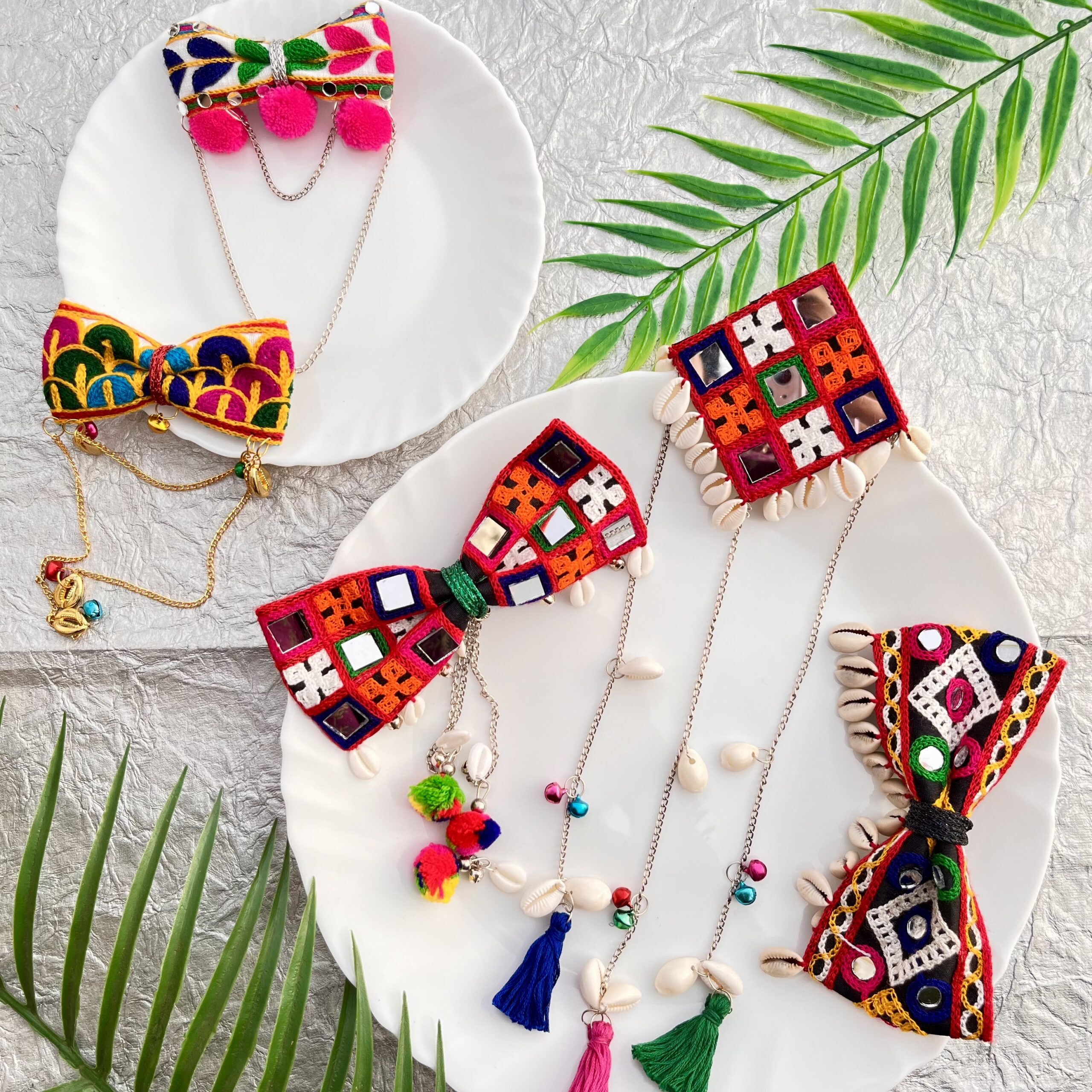 From chain-hanging shells to colorful bows and vibrant pompoms – get festive-ready with hair accessories that celebrate every garba twirl and dandiya beat! 💃🌙