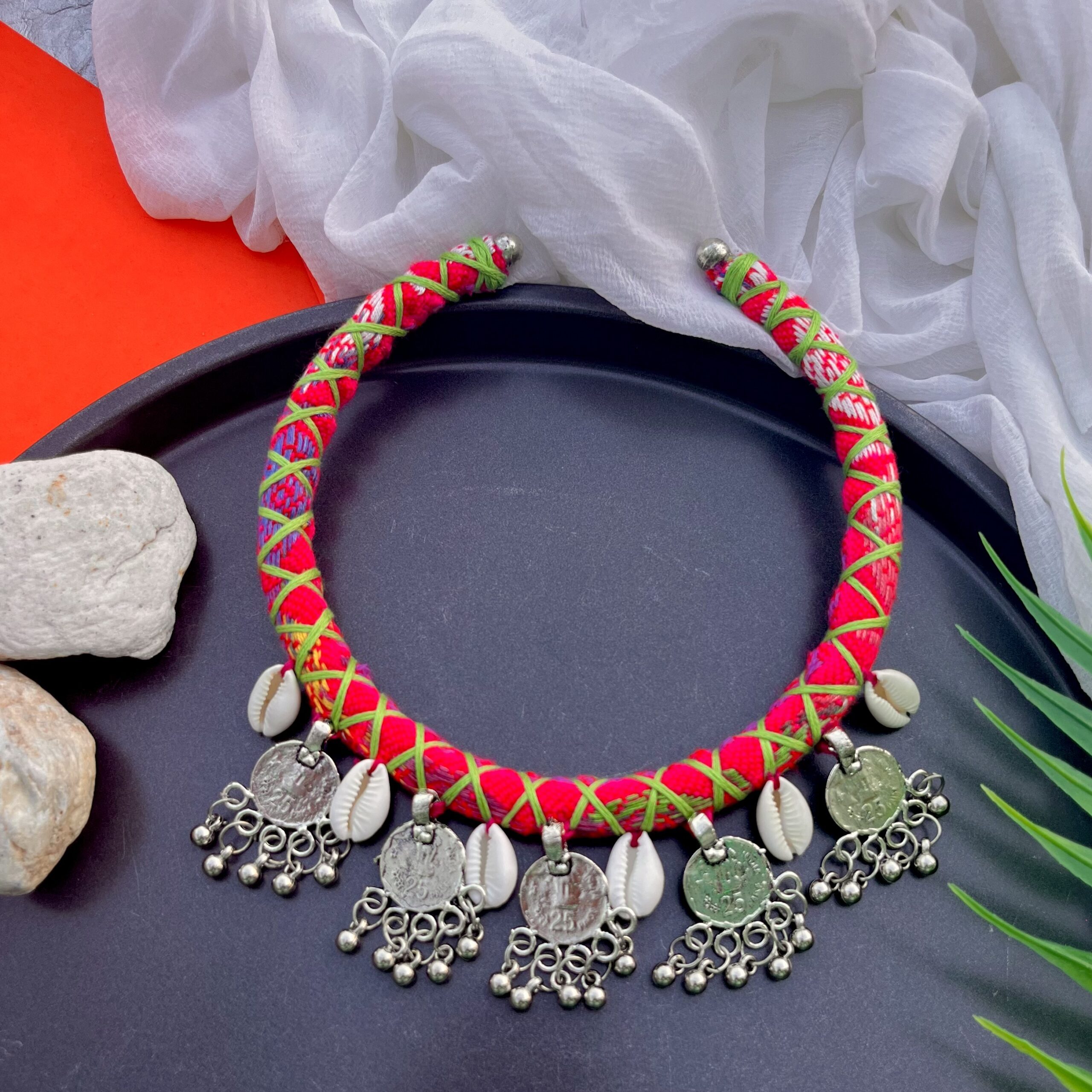 Our Nomad Luxe Hasli is a bold blend of textured jacquard fabric, rustic coins, and coastal shells — handcrafted for the modern muse who carries culture with style.